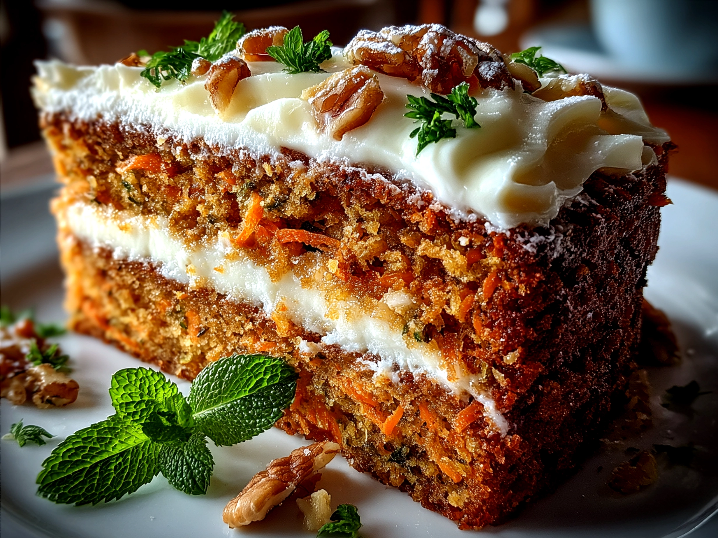 A moist and flavorful carrot cake made with fresh grated carrots and warm spices, topped with a creamy cream cheese frosting. Perfect for any occasion or dessert craving.