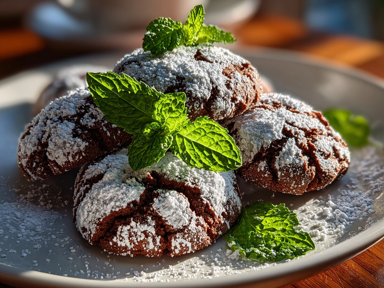What surprised me most was how these Chocolate Mint Crinkles sparked laughter and storytelling around the kitchen table. The way the crisp exterior dusted with powdered sugar contrasted with the soft, chewy center made every bite a little comfort ritual. Over time, I refined the recipe through my own kitchen adventures, adjusting the mint intensity to suit various family taste buds. Now, Chocolate Mint Crinkles hold a special place in my cooking heart because they are about more than flavor—they are about bringing people close through food they love.