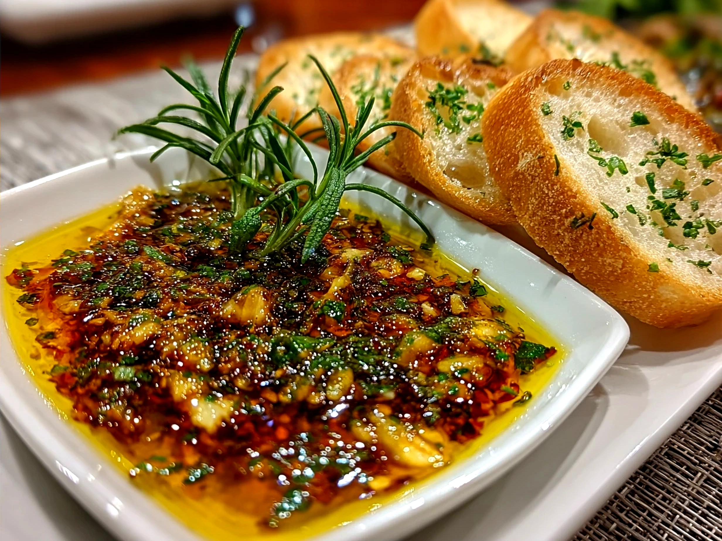 A splash of acidity brightens the olive oil dipping sauce perfectly, balancing the garlic’s richness. - 1/2 teaspoon red pepper flakes (optional)