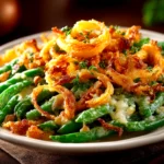 Do not forget crispy texture! Use 1 1/3 cups of French fried onions to top your casserole. These bring that classic golden crunch every Green Bean Casserole deserves. You’ll find them at most grocery stores, or for an extra touch, try making your own fried onions at home.