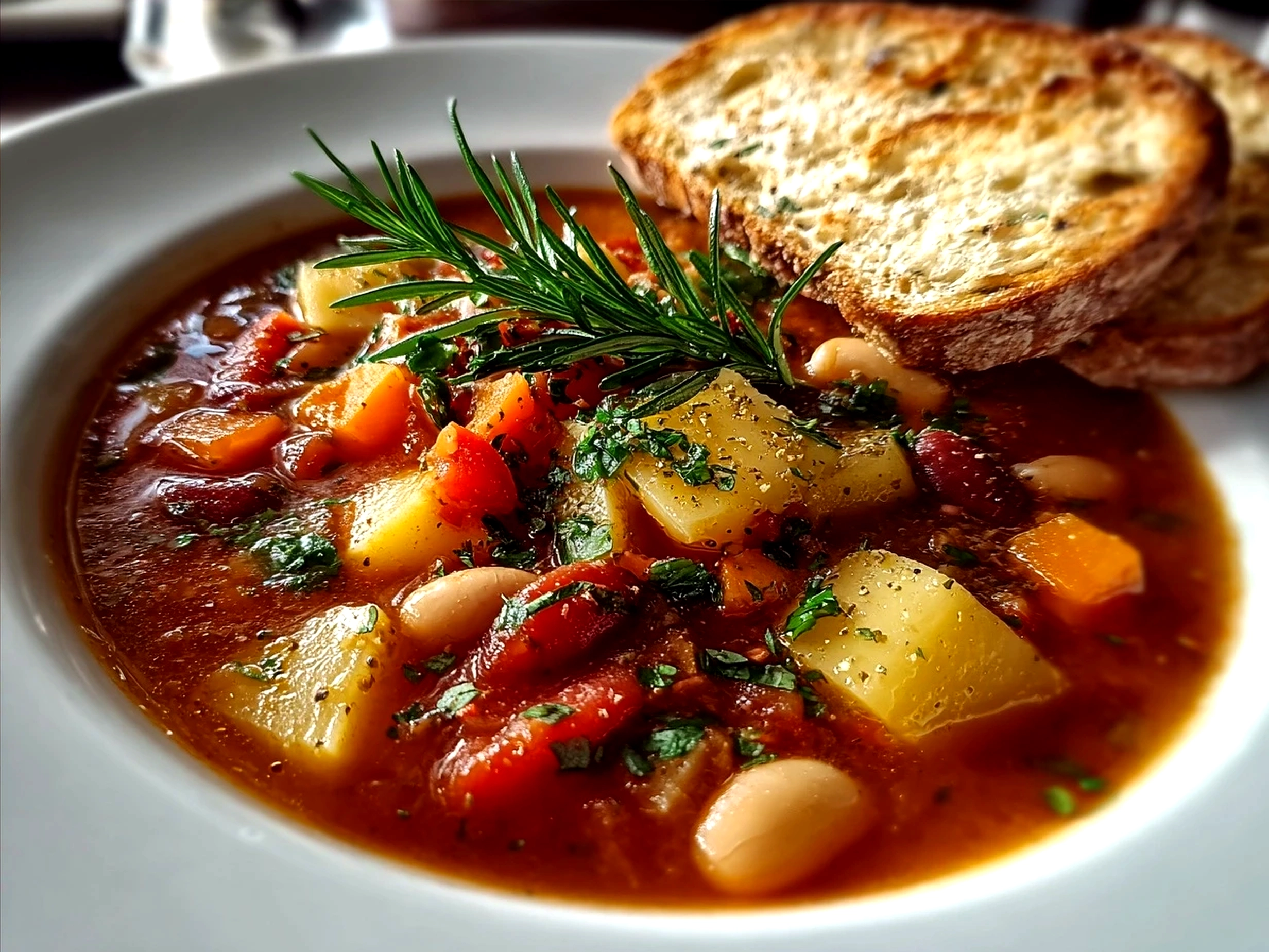 A hearty and wholesome Italian vegetable soup loaded with fresh veggies, beans, and pasta, perfect for a comforting meal any time of year.