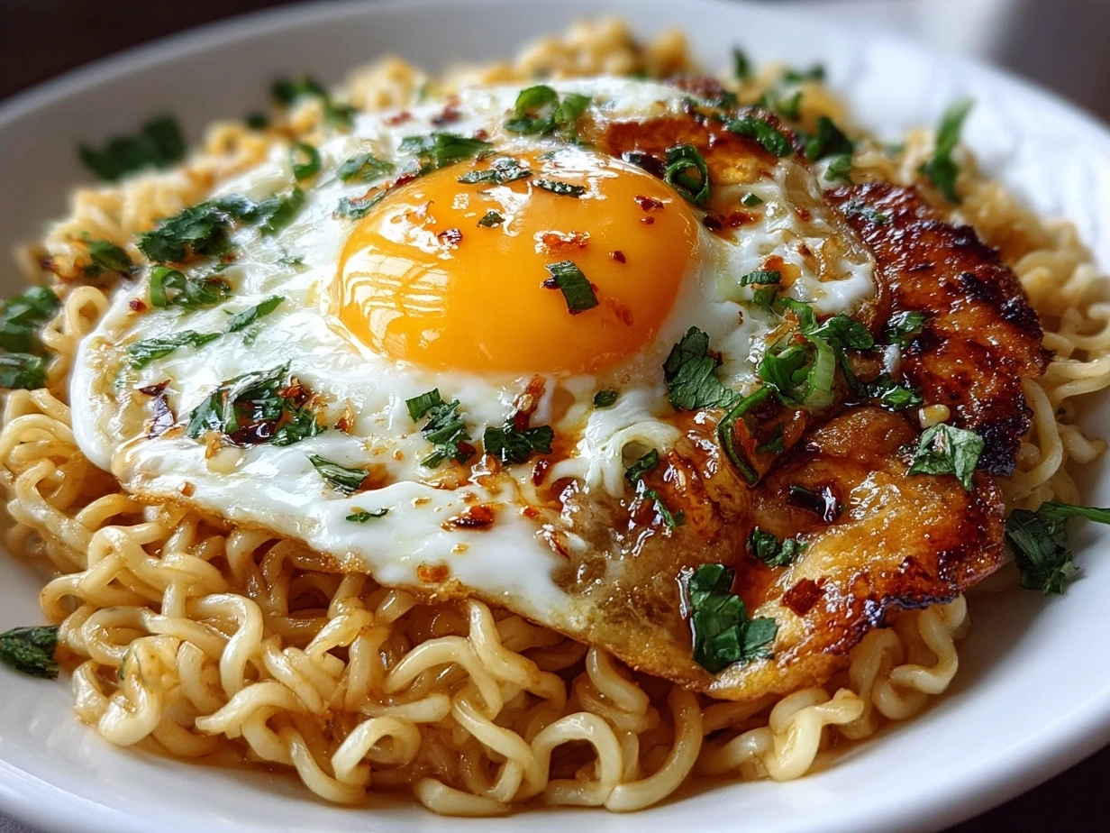 A quick and flavorful twist on classic instant noodles, enriched with creamy butter, fragrant garlic, and a perfectly cooked egg for a comforting meal.
