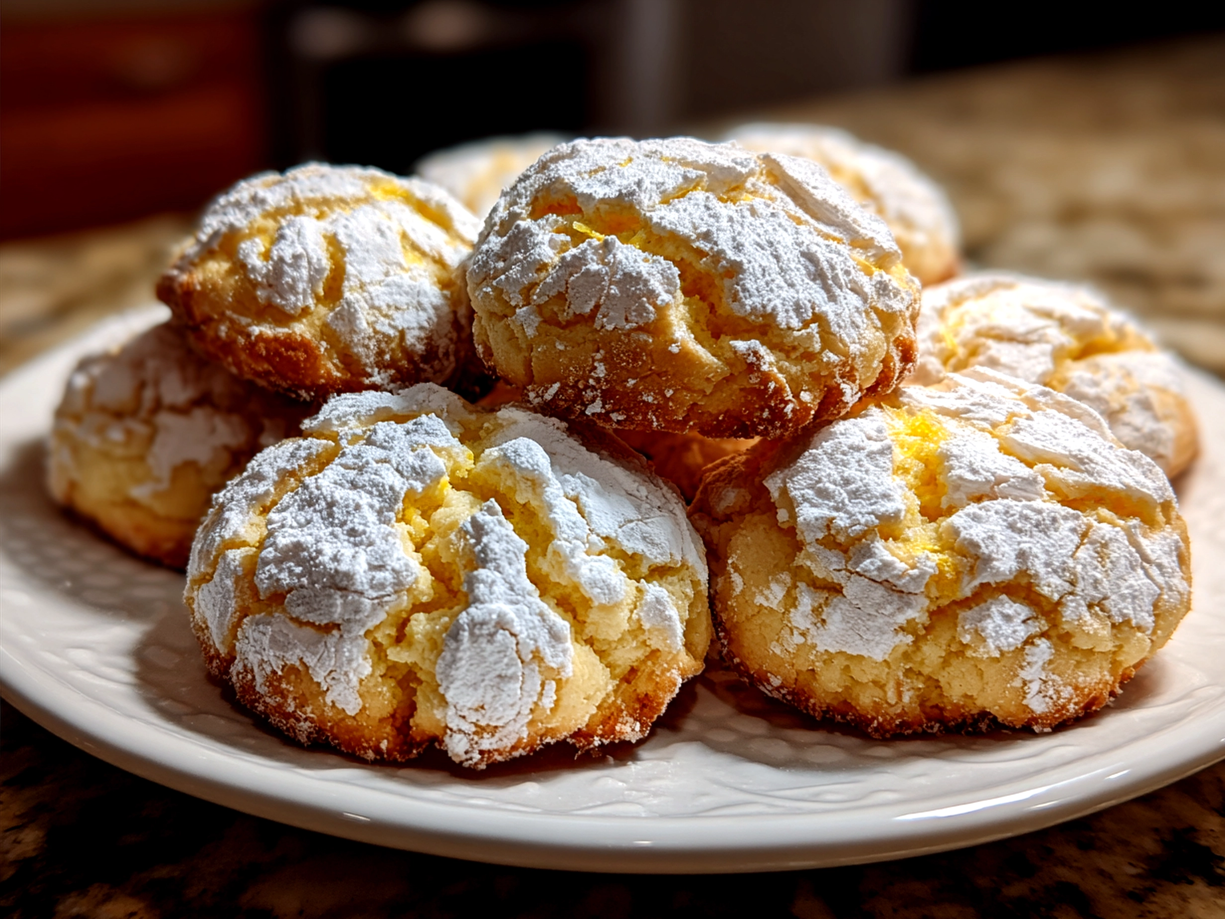 Freshly baked Lemon Crinkle Cookies ready to serve