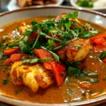 Moqueca Fish Stew is a vibrant Brazilian dish featuring fresh fish simmered in a fragrant blend of coconut milk, tomatoes, peppers, and spices, delivering a rich and comforting coastal flavor.