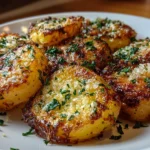 When guests arrive, these roasted parmesan potatoes always get amazing feedback for their crispy edges and garlicky bursts. I love arranging them on a platter with a garnish of fresh parsley and a light drizzle of extra olive oil for a presentation that honors the authentic flavors.